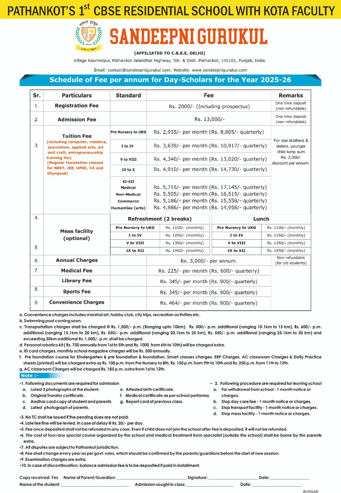 | 5. SCHOOL EMAIL ID | gurukulsandeepni@gmail.com |